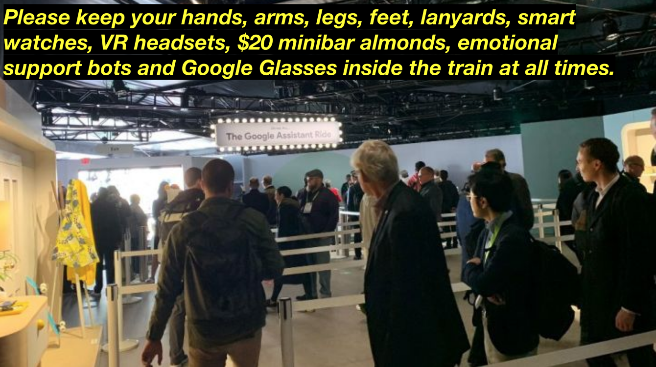 For the 2019 Consumer Electronics Show in Las Vegas, Google created a Disney World-style theme park ride touting the benefits of Google Assistant. I helped write lyrics to the song on the ride, jokes for the ride's safety message, roast jokes delivered by an animatronic grandma, and promotional copy.